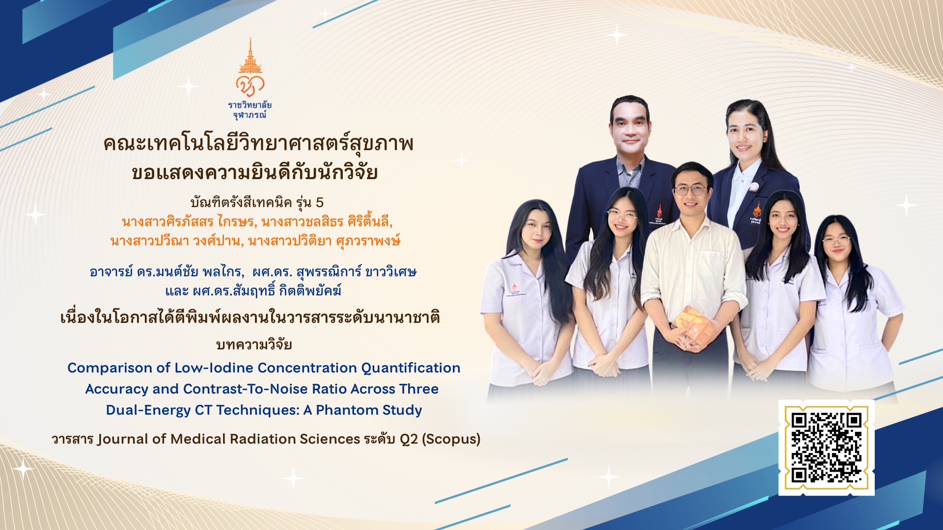 by hst 25/02/2026 งานวิจัย นวัตกรรม และวิเทศสัมพันธ์ ยินดีกับบัณฑิตรังสีเทคนิค รุ่น 5 ตีพิมพ์ผลงานวิจัยระดับนานาชาติ อ่านเพิ่มเติม..