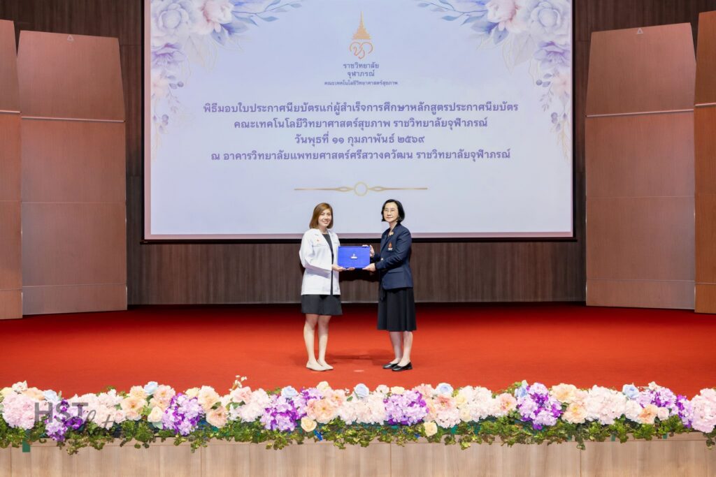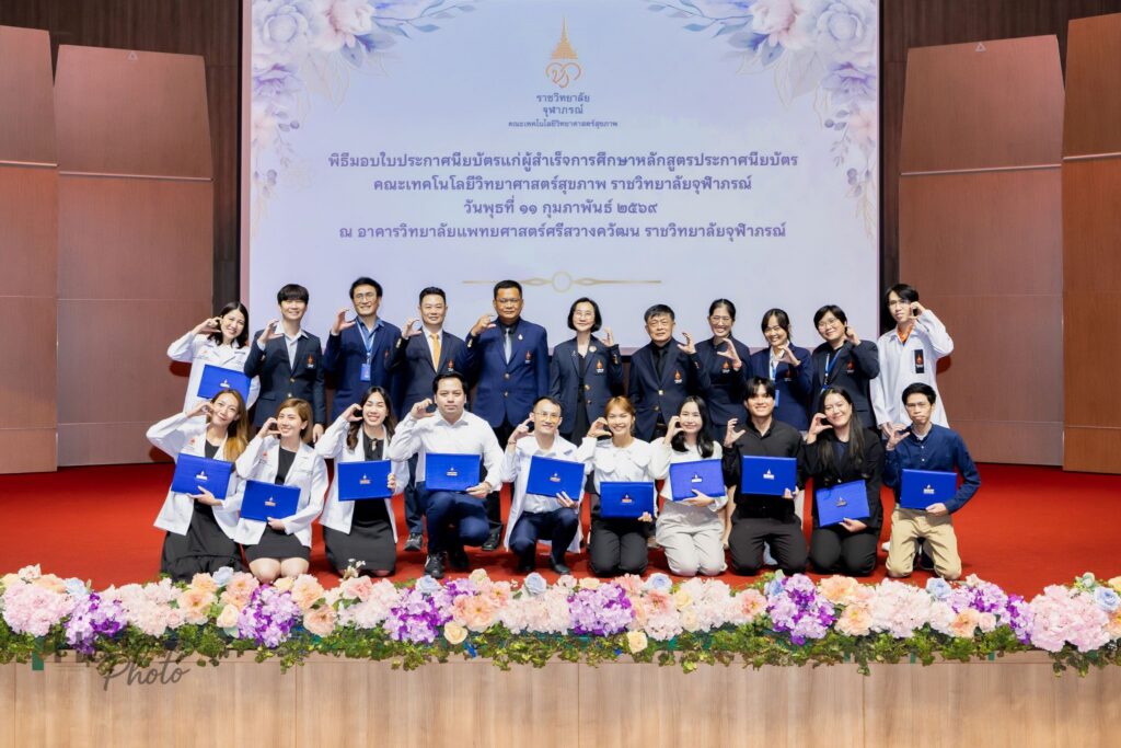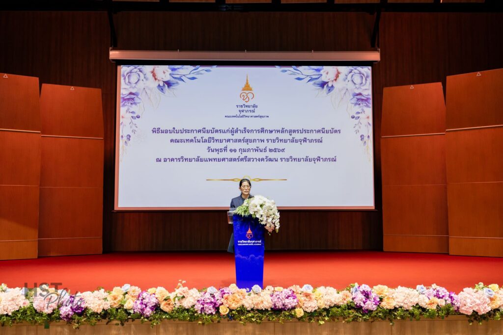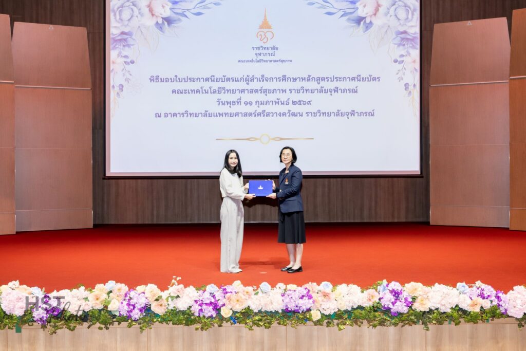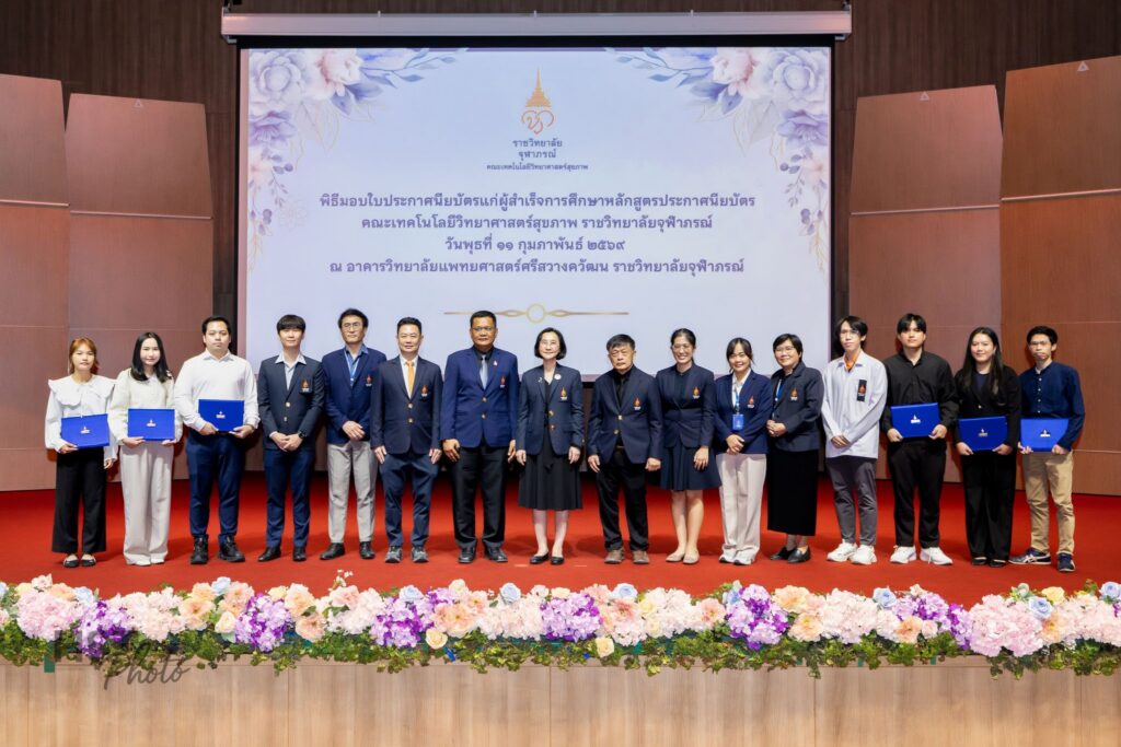 เมื่อวันที่ 11 กุมภาพันธ์ 2569 คณะเทคโนโลยีวิทยาศาสตร์สุขภาพ ราชวิทยาลัยจุฬาภรณ์ จัดพิธีมอบใบประกาศนียบัตรแก่ผู้สำเร็จการศึกษาหลักสูตรประกาศนียบัตร โดยได้รับเกียรติจาก ศาสตราจารย์ แพทย์หญิงยุวเรศมคฐ์ สิทธิชาญบัญชา รักษาการคณบดีคณะเทคโนโลยีวิทยาศาสตร์สุขภาพ เป็นประธานในพิธีมอบใบประกาศนียบัตรและให้โอวาทแก่ผู้สำเร็จการศึกษา ภายในพิธี ผู้ช่วยศาสตราจารย์ ดร.สุพรรณิการ์ ขาววิเศษ รักษาการผู้ช่วยคณบดีด้านการศึกษา ได้กล่าวรายงานต่อประธานในพิธี