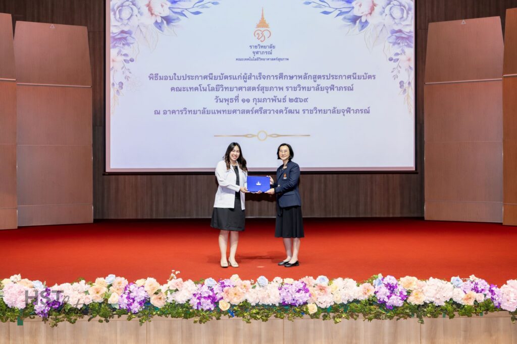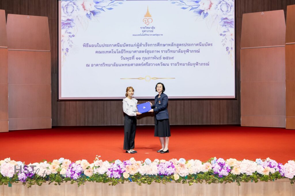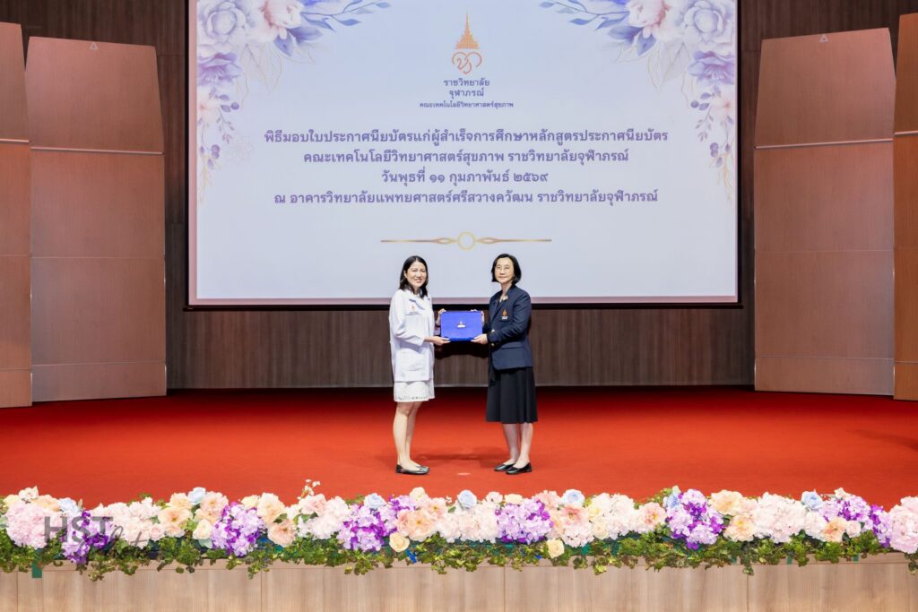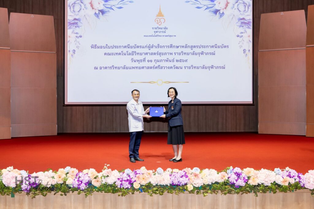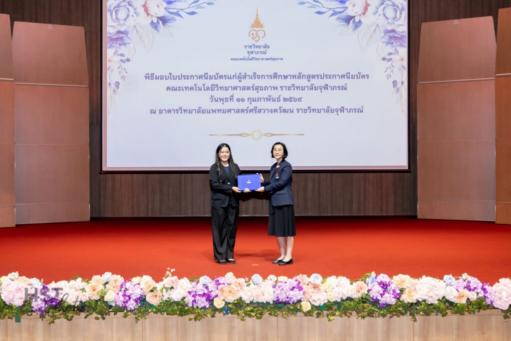 เมื่อวันที่ 11 กุมภาพันธ์ 2569 คณะเทคโนโลยีวิทยาศาสตร์สุขภาพ ราชวิทยาลัยจุฬาภรณ์ จัดพิธีมอบใบประกาศนียบัตรแก่ผู้สำเร็จการศึกษาหลักสูตรประกาศนียบัตร โดยได้รับเกียรติจาก ศาสตราจารย์ แพทย์หญิงยุวเรศมคฐ์ สิทธิชาญบัญชา รักษาการคณบดีคณะเทคโนโลยีวิทยาศาสตร์สุขภาพ เป็นประธานในพิธีมอบใบประกาศนียบัตรและให้โอวาทแก่ผู้สำเร็จการศึกษา ภายในพิธี ผู้ช่วยศาสตราจารย์ ดร.สุพรรณิการ์ ขาววิเศษ รักษาการผู้ช่วยคณบดีด้านการศึกษา ได้กล่าวรายงานต่อประธานในพิธี
