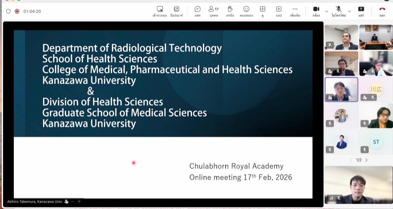 การประชุมดังกล่าวมีวัตถุประสงค์เพื่อส่งเสริมความร่วมมือทางวิชาการระหว่างราชวิทยาลัยจุฬาภรณ์และมหาวิทยาลัยคานาซาวะ โดยมีการแลกเปลี่ยนข้อมูลเกี่ยวกับหลักสูตรด้านรังสีเทคนิคและฟิสิกส์การแพทย์ ตลอดจนหารือแนวทางการวิจัยร่วมและโครงการแลกเปลี่ยนนักศึกษา การประชุมครั้งนี้นับเป็นอีกก้าวสำคัญในการเสริมสร้างเครือข่ายความร่วมมือทางวิชาการระดับนานาชาติ เพื่อยกระดับการเรียนการสอน การวิจัย และศักยภาพของบุคลากรด้านรังสีการแพทย์สู่มาตรฐานสากล