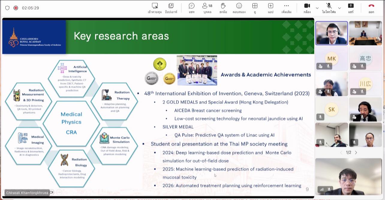 On Tuesday, February 17, 2026, faculty members from the School of Radiological Technology, led by Asst. Prof. Dr. Paramest Wongsa, Director of the School, together with Asst. Prof. Dr. Samrit Kittipayak, Assistant Dean for External Affairs and International Relations of the Faculty of Health Science Technology, and faculty members from the Medical Physics Program, Princess Srisavangavadhana Faculty of Medicine, led by Assoc. Prof. Dr. Danupon Nantajit and Asst. Prof. Dr. Chirasak Khamfongkhruea, participated in an academic collaboration meeting with faculty members from the Department of Radiological Technology and the Department of Quantum Medical Technology, Kanazawa University, Japan, led by Prof. Dr. Kosuke Matsubara and his distinguished colleagues