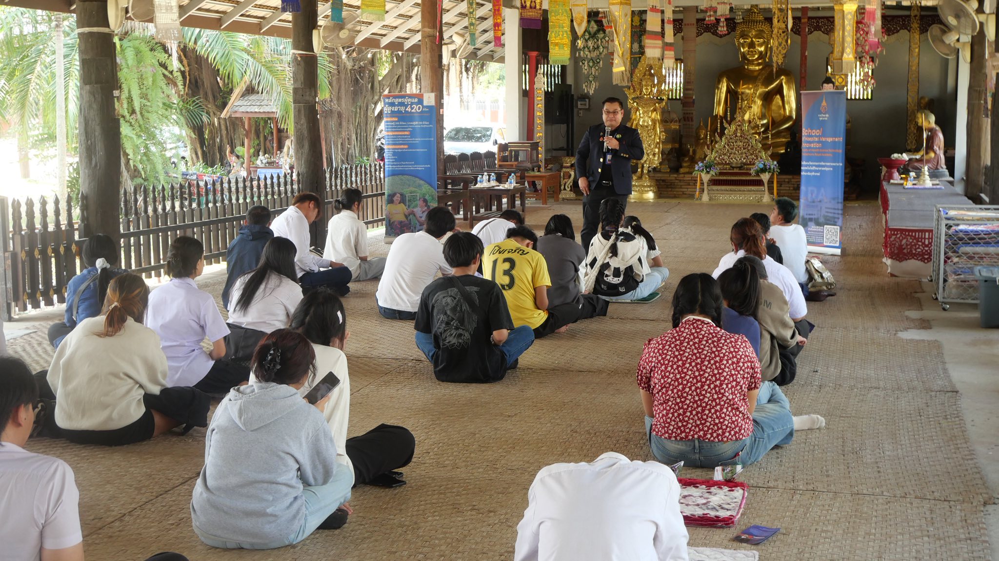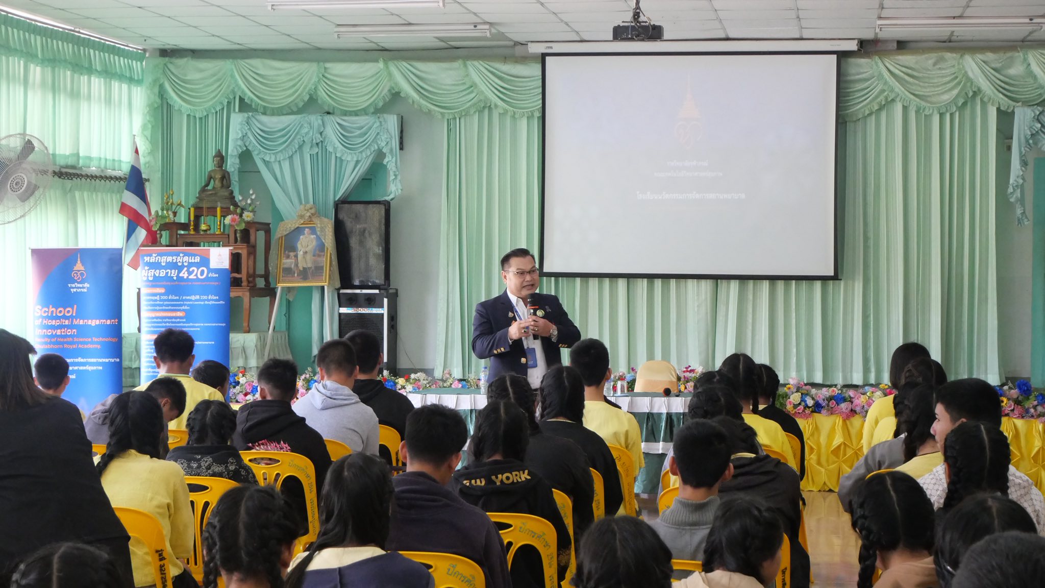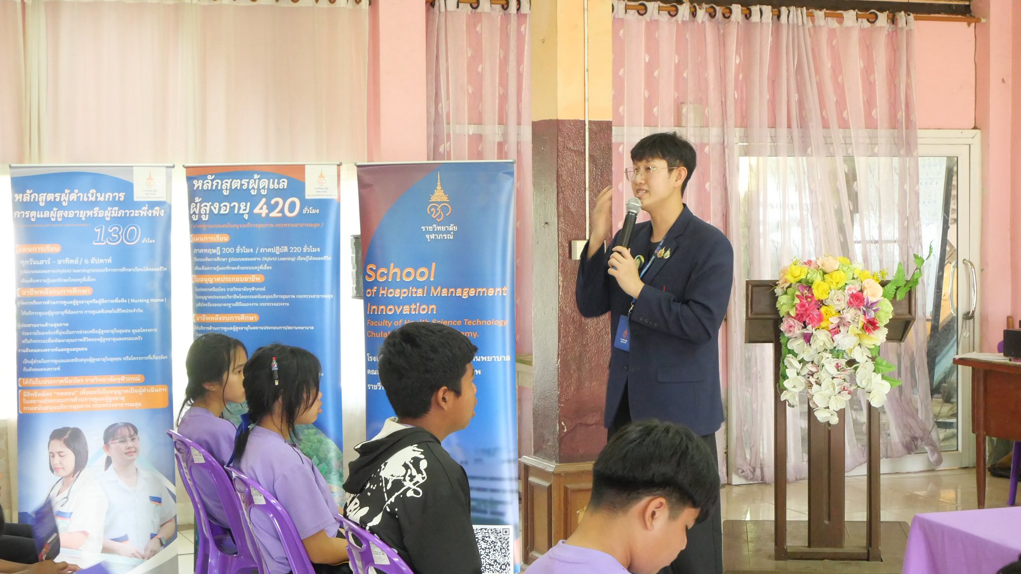 เมื่อวันที่ 19-20 กุมภาพันธ์ 2569 โรงเรียนนวัตกรรมการจัดการสถานพยาบาล คณะเทคโนโลยีวิทยาศาสตร์สุขภาพ ราชวิทยาลัยจุฬาภรณ์ นำโดย ว่าที่ ร.ต. ดร.อุดม สุวรรณพิมพ์ ผู้อำนวยการโรงเรียนฯ ลงพื้นที่แนะแนวหลักสูตรระยะสั้นด้านการดูแลผู้สูงอายุ ณ อำเภอพาน จังหวัดเชียงราย เพื่อเสริมสร้างทักษะและสร้างโอกาสทางอาชีพที่สอดคล้องกับสังคมสูงวัย โดยได้รับเกียรติจาก อาจารย์สายสุรี ทนันชัย วิทยากรผู้ทรงคุณวุฒิและอาจารย์พิเศษของโรงเรียน ร่วมถ่ายทอดประสบการณ์ตรงและแนวทางการประกอบอาชีพในสายงานบริบาล ซึ่งช่วยสร้างความเข้าใจและแรงบันดาลใจแก่ผู้เข้าร่วมกิจกรรมเป็นอย่างดี