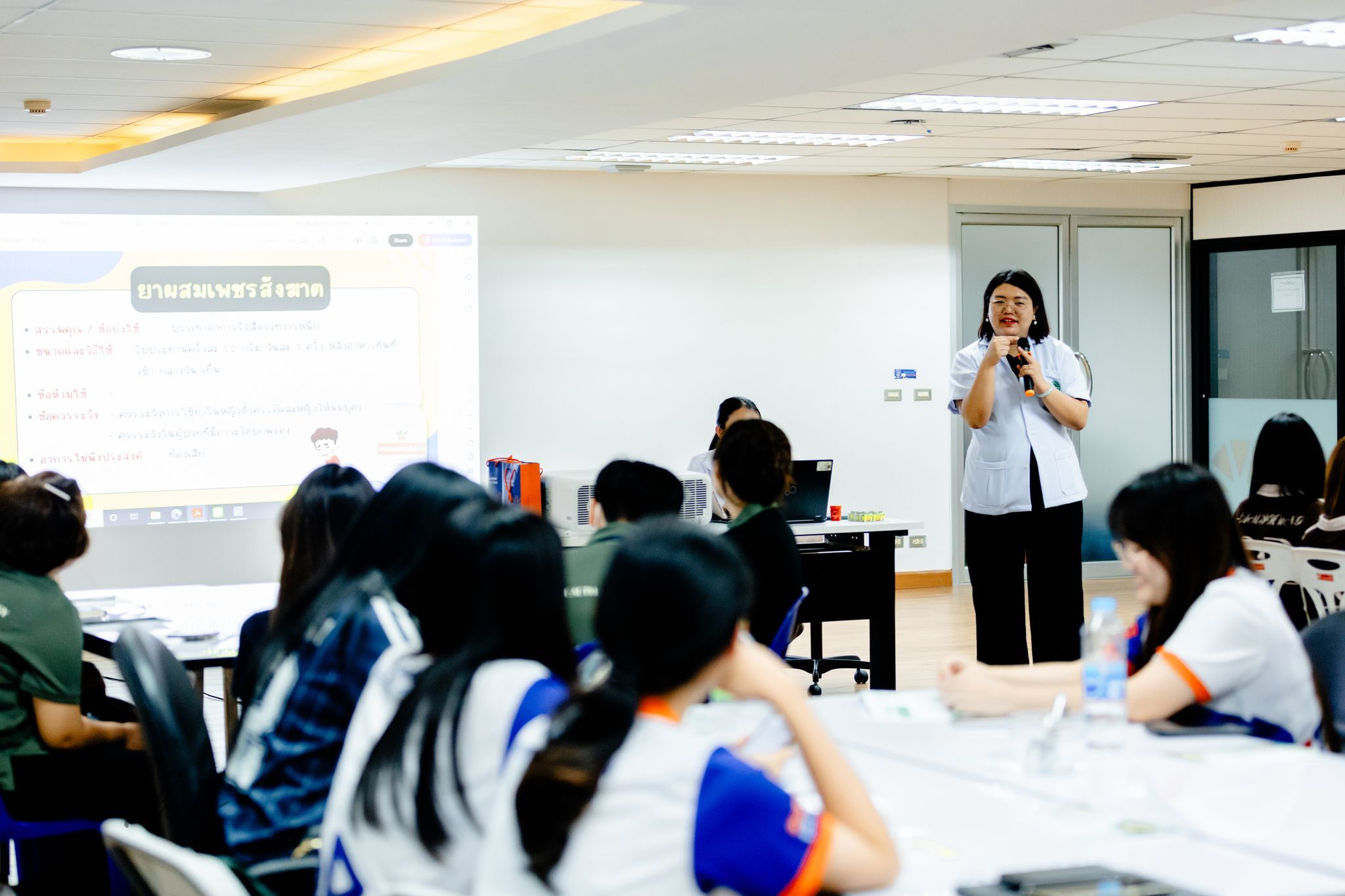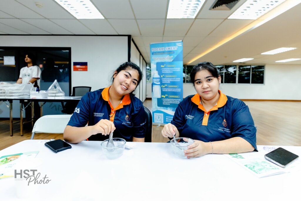 บรรยากาศภายในงานเต็มไปด้วยความรู้และความสนุกสนานผ่านกิจกรรมภาคปฏิบัติที่หลากหลาย อาทิ การฝึกทักษะการนวดตนเองเพื่อผ่อนคลาย การยืดเหยียดร่างกายด้วยท่าฤๅษีดัดตนเพื่อปรับสมดุล และกิจกรรมเวิร์กชอป DIY ทำพิมเสนน้ำสมุนไพร ซึ่งสร้างความประทับใจและเสริมสร้างประสบการณ์ตรงให้แก่นักศึกษา ในการนี้ ทางคณะฯ และสโมสรนักศึกษาขอขอบพระคุณ บริษัท โอซูก้า นิวทราซูติคอล (ประเทศไทย) จำกัด เป็นอย่างสูงที่ให้การสนับสนุนการจัดกิจกรรมในครั้งนี้ให้สำเร็จลุล่วงด้วยดี