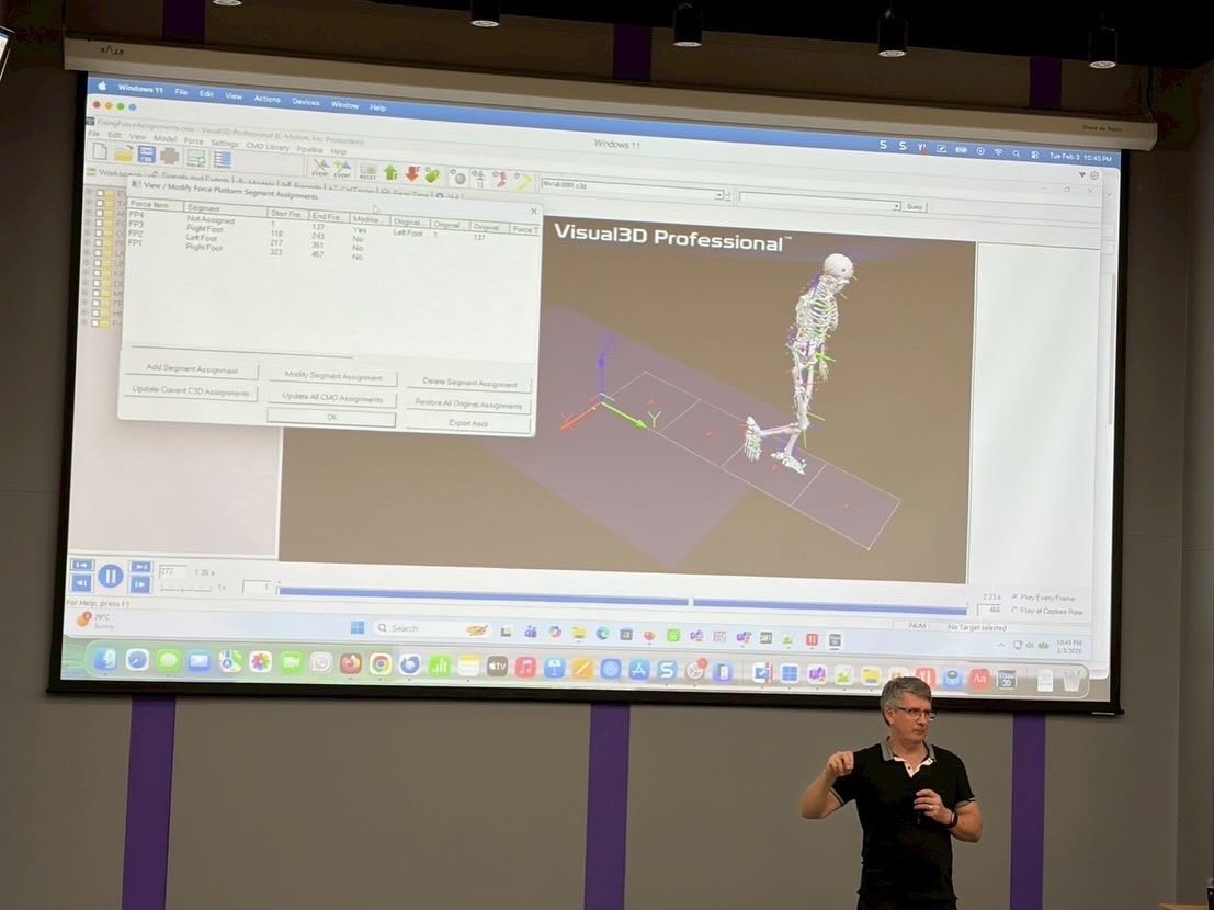 วิทยาลัยวิทยาศาสตร์และเทคโนโลยีการกีฬา มหาวิทยาลัยมหิดล จัดอบรมเชิงปฏิบัติการภายใต้โครงการ Thailand User Group Meetings: “Visual 3D and Sift Training” เมื่อวันที่ 3–4 กุมภาพันธ์ 2569 ณ วิทยาลัยวิทยาศาสตร์และเทคโนโลยีการกีฬา โดยได้รับเกียรติจาก Mr. Scott Selbie ประธานเจ้าหน้าที่บริหาร บริษัท HAS-motion และ Dr. Jim Richards จาก University of Lancashire พร้อมคณะวิทยากรผู้เชี่ยวชาญ ถ่ายทอดองค์ความรู้ด้านเทคโนโลยีการวิเคราะห์การเคลื่อนไหวในเชิงลึก