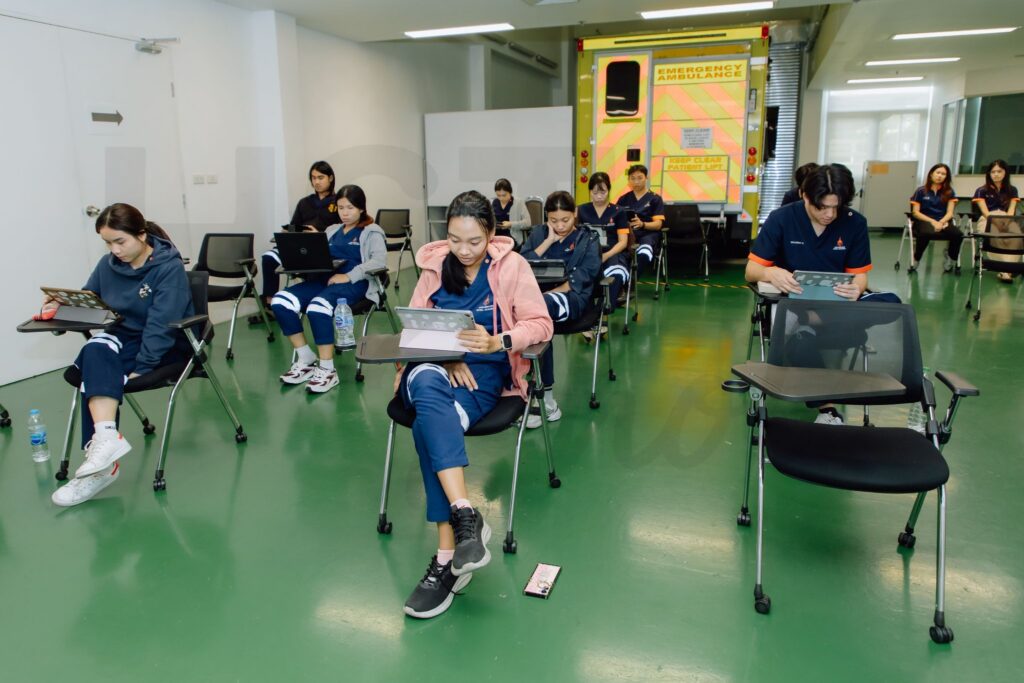 by hst 25/03/2026 วิชาการโรงเรียนนักฉุกเฉินการแพทย์ หลักสูตรวิทยาศาสตรบัณฑิต สาขาวิชาฉุกเฉินการแพทย์ จัดกิจกรรม “การฝึกประเมินทักษะทางคลินิก” ประจำปีการศึกษา 2569 สำหรับนักศึกษาชั้นปีที่ 3 ภายใต้แนวคิด “ฝึกจริง ประเมินจริง เตรียมพร้อมสู่สถานการณ์ฉุกเฉิน” เพื่อเปิดโอกาสให้นักศึกษาได้แสดงศักยภาพด้านวิชาชีพ และเตรียมความพร้อมก่อนก้าวสู่การปฏิบัติงานจริงในอนาคต กิจกรรมครั้งนี้เต็มไปด้วยบรรยากาศแห่งการเรียนรู้และความตั้งใจ นักศึกษาได้ลงมือฝึกปฏิบัติในสถานการณ์จำลองเสมือนจริง ฝึกคิด วิเคราะห์ และตัดสินใจอย่างมืออาชีพ พร้อมได้รับคำแนะนำจากอาจารย์ผู้เชี่ยวชาญอย่างใกล้ชิด ถือเป็นอีกหนึ่งก้าวสำคัญในการเสริมทักษะและสร้างความมั่นใจสู่การเป็นบุคลากรฉุกเฉินการแพทย์ที่พร้อมดูแลชีวิตผู้คนด้วยหัวใจแห่งความมุ่งมั่นและความเมตตาภาพบรรยากาศเพิ่มเติม Views: 29