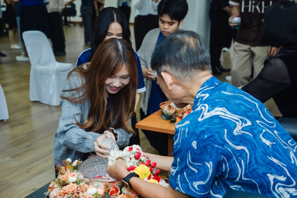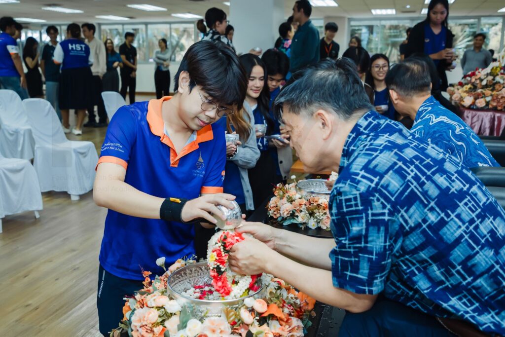 by hst 09/04/2026 คณะเทคโนโลยีวิทยาศาสตร์สุขภาพ คณะเทคโนโลยีวิทยาศาสตร์สุขภาพ ได้จัดโครงการ “กิจกรรมรดน้ำขอพรสืบสานประเพณีสงกรานต์” เมื่อวันที่ 7 เมษายน 2569 ณ อาคารสำนักงานราชวิทยาลัยจุฬาภรณ์ ชั้น 1 โซน C Co-working Space โดยบรรยากาศภายในงานเต็มไปด้วยความอบอุ่น เคารพ และเป็นสิริมงคล ผู้บริหาร คณาจารย์ และบุคลากรทุกท่านต่างร่วมกันรดน้ำขอพรเพื่อสืบสานประเพณีไทยอันทรงคุณค่า ในโอกาสนี้ คณะได้รับเกียรติจาก ศ.พญ. ยุวเรศมคฐ์ สิทธิชาญบัญชา รักษาการคณบดี ดร.นพ. วิทยา สังขรัตน์ รักษาการรองคณบดีด้านวิจัย นวัตกรรม และเทคโนโลยีสารสนเทศ และ รศ.นพ. สุทธิพงษ์ จงจิระศิริ รักษาการรองคณบดีด้านบริการวิชาการและวิชาชีพ ร่วมมอบพรปีใหม่ไทยอันเป็นมงคลแก่บุคลากรทุกท่าน กิจกรรมครั้งนี้สะท้อนถึงความผูกพัน ความสามัคคี และความตั้งใจในการอนุรักษ์วัฒนธรรมไทยให้คงอยู่สืบไป พร้อมอวยพรให้ทุกท่านมีความสุข สุขภาพแข็งแรง และประสบความสำเร็จตลอดปีใหม่ไทย Views: 8