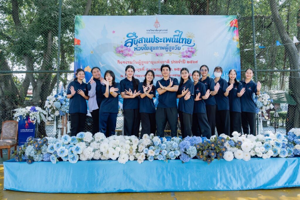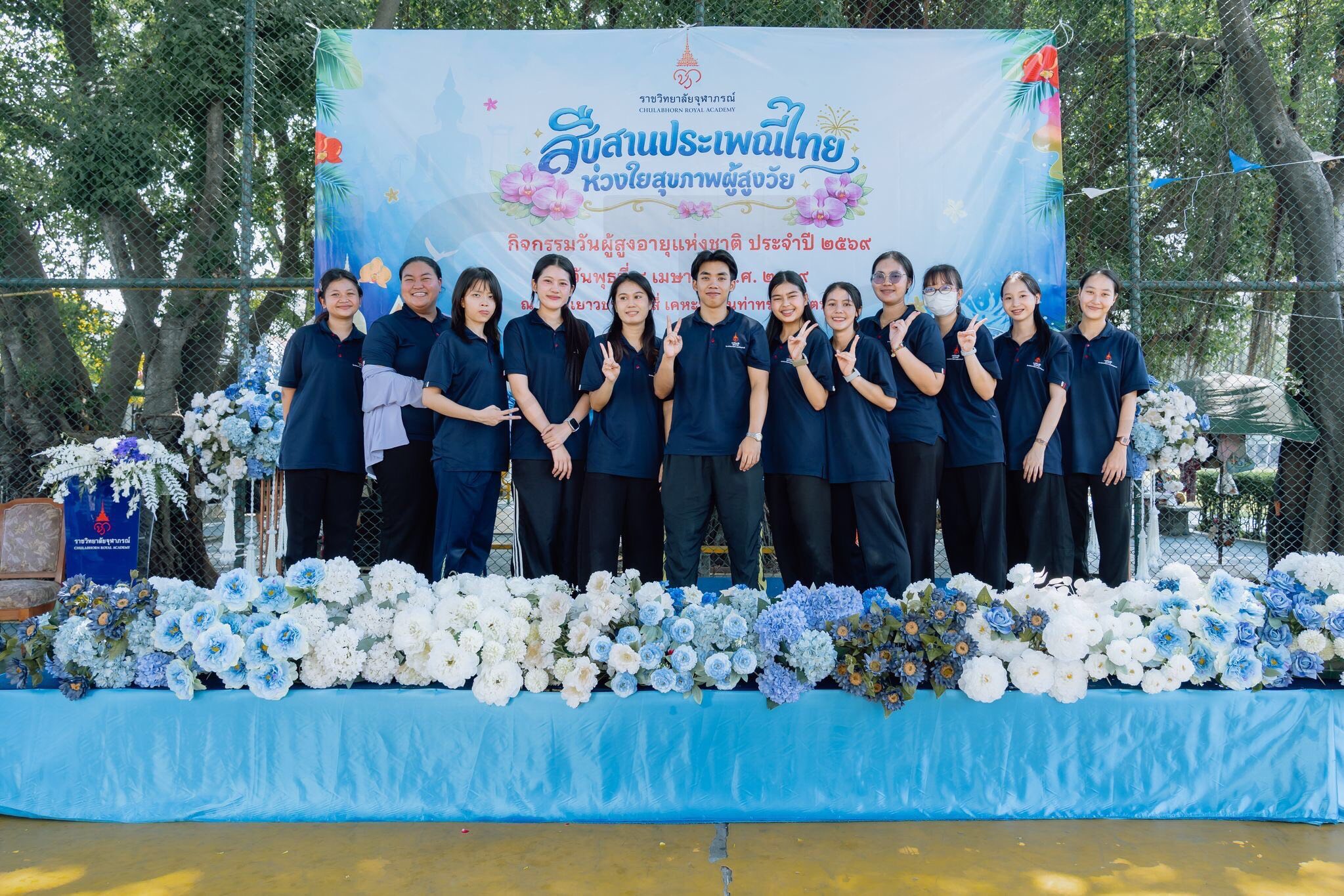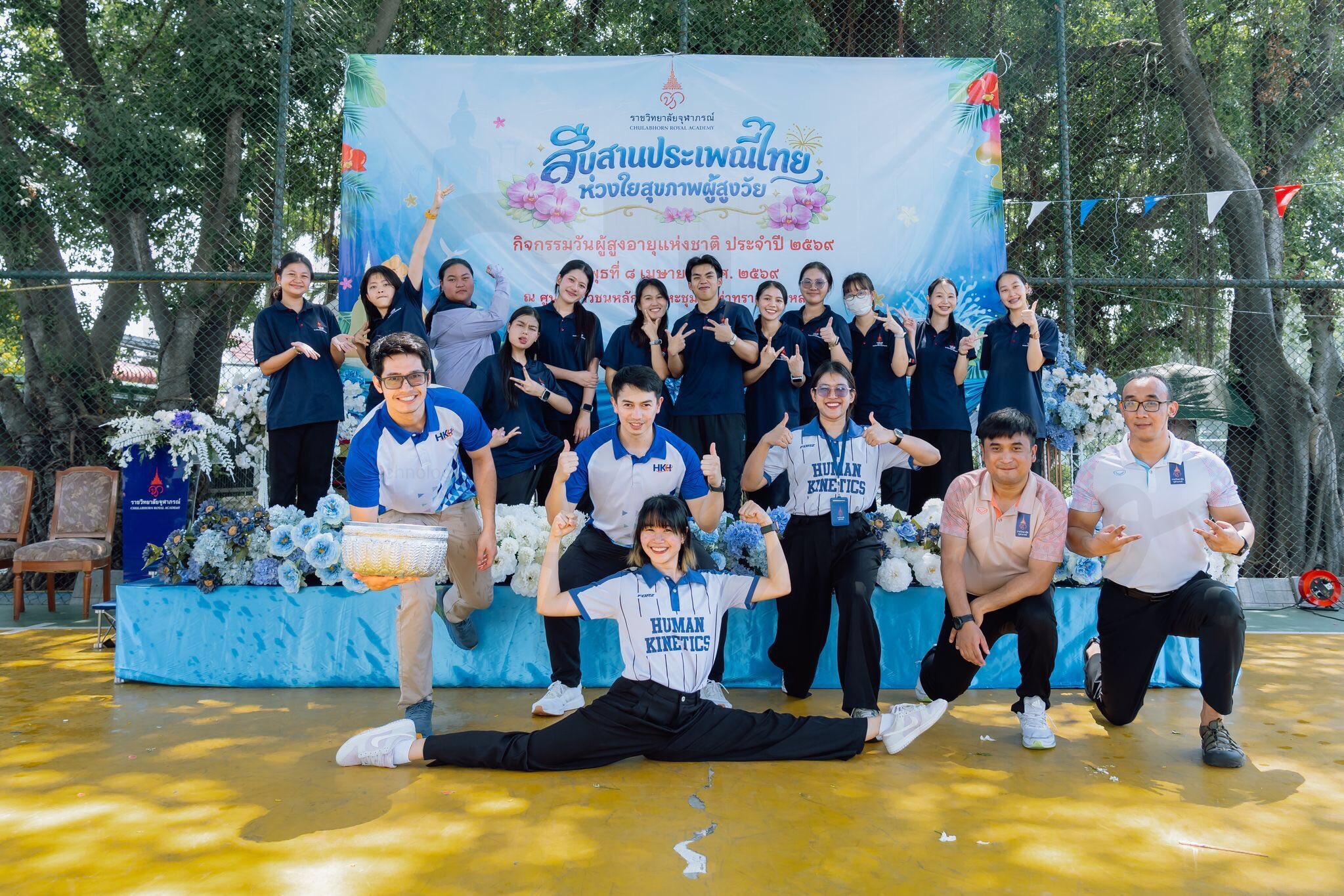 โครงการ “ราชวิทยาลัยจุฬาภรณ์เพื่อสังคม” จัดกิจกรรมเนื่องในวันผู้สูงอายุแห่งชาติ เพื่อร่วมส่งเสริมสุขภาพกายและใจให้แก่ผู้สูงวัยในชุมชน ภายใต้แนวคิด “ร่วมสร้างรอยยิ้มและส่งเสริมสุขภาพที่ดีให้กับผู้สูงอายุ” โดยมีคณาจารย์ บุคลากร และนักศึกษาจากโรงเรียนวิทยาศาสตร์การเคลื่อนไหวและสุขภาพ ร่วมกับคณะพยาบาลศาสตร์ เข้าร่วมดำเนินกิจกรรมตรวจประเมินสุขภาพเบื้องต้น ให้คำแนะนำด้านการออกกำลังกาย โภชนาการ และการดูแลสุขภาพจิต พร้อมกิจกรรมนันทนาการเพื่อเสริมสร้างความสุขและกระชับความสัมพันธ์ในชุมชน เมื่อวันพุธที่ 8 เมษายน 2569 เวลา 08.00–12.00 น. ณ อาคารอเนกประสงค์ ศูนย์กีฬาท่าทราย
