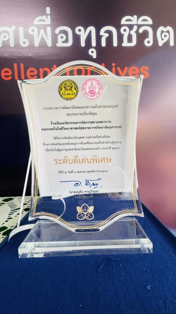 ในการนี้ ว่าที่ร้อยตรี ดร.อุดม สุวรรณพิมพ์ ผู้อำนวยการโรงเรียนนวัตกรรมการจัดการสถานพยาบาล ได้นำคณะบุคลากรของโรงเรียน ผู้ช่วยวิจัยโครงการ “แจ้ซ้อนเมืองต้นแบบแห่งการท่องเที่ยวเชิงสุขภาพระดับสากล” และนักศึกษาหลักสูตรผู้ดูแลผู้สูงอายุ 420 ชั่วโมง เข้าร่วมรับเสด็จ พร้อมทั้งร่วมจัดนิทรรศการเพื่อนำเสนอผลการดำเนินงานของโครงการ โดยเน้นการพัฒนาศักยภาพชุมชนด้านสุขภาพ การดูแลผู้สูงอายุอย่างมีคุณภาพ และการส่งเสริมการท่องเที่ยวเชิงสุขภาพอย่างยั่งยืน อันเป็นการบูรณาการองค์ความรู้ทางวิชาการสู่การปฏิบัติจริงในพื้นที่ ทั้งนี้ ผู้อำนวยการโรงเรียนได้ทูลเกล้าทูลกระหม่อมถวายของที่ระลึกแด่พระองค์ท่าน เพื่อแสดงความจงรักภักดีและสำนึกในพระกรุณาธิคุณอย่างหาที่สุดมิได้
