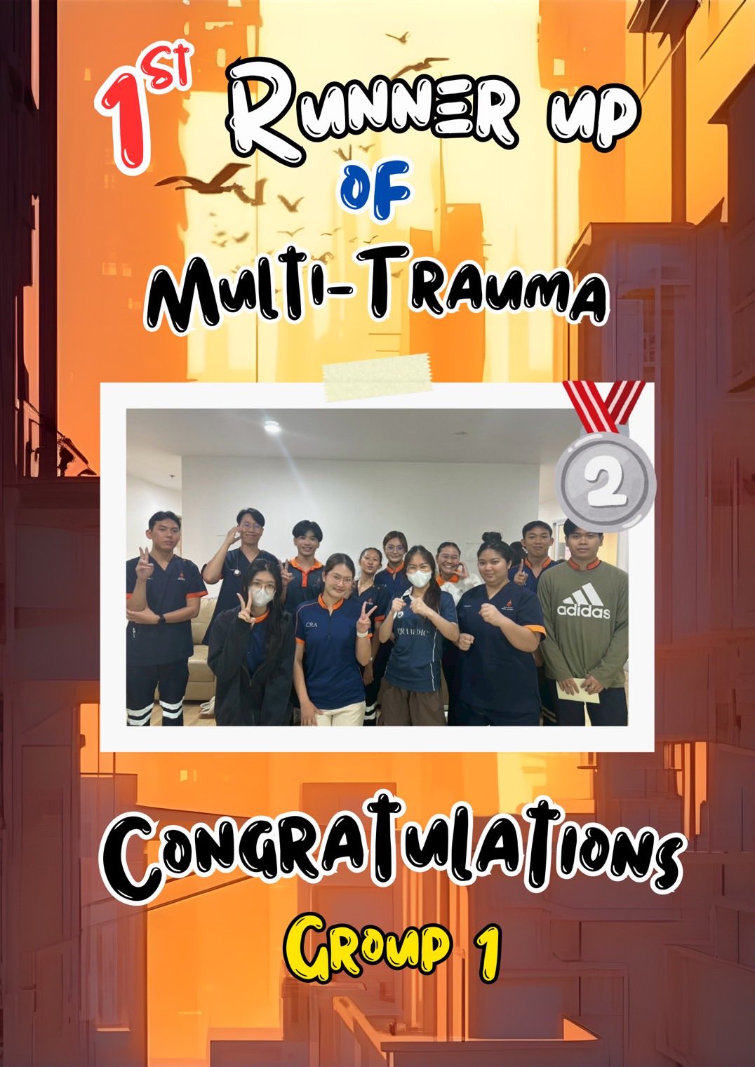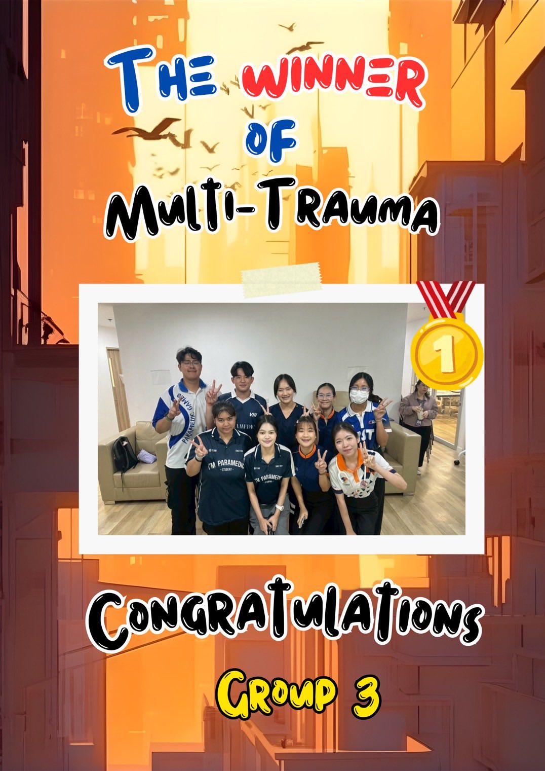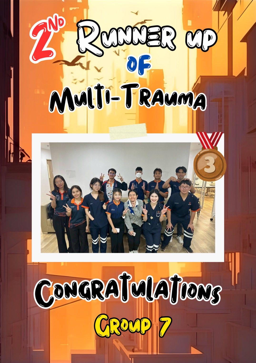 ทั้งนี้ ขอแสดงความยินดีกับผู้เข้าร่วมที่ได้รับรางวัลจากการแข่งขัน 5th CRA Star Multi Trauma ซึ่งสะท้อนถึงความรู้ ความสามารถ และศักยภาพในการปฏิบัติงานภายใต้สถานการณ์กดดันได้อย่างยอดเยี่ยม โดยรางวัลชนะเลิศ ได้แก่ Group 3 “นกคุ้มหลี” รองชนะเลิศอันดับ 1 ได้แก่ Group 1 “ดูดีดีนี่มันมาแกงก้า” และรองชนะเลิศอันดับ 2 ได้แก่ Group 7 “The Lethal Diamond” นอกจากนี้ ยังมีรางวัล The Best of the Station ซึ่งมอบให้แก่ทีมที่มีผลการปฏิบัติงานโดดเด่นในแต่ละฐาน ได้แก่ ALS Station: Group 3 “นกคุ้มหลี”, BLS Station: Group 1 “ดูดีดีนี่มันมาแกงก้า” และ EMD Station: Group 2 “G.2 สยองขวัญ” โดยความสำเร็จในครั้งนี้นับเป็นอีกก้าวสำคัญในการส่งเสริมการเรียนรู้เชิงปฏิบัติและยกระดับมาตรฐานการดูแลผู้ป่วยฉุกเฉินอย่างยั่งยืน