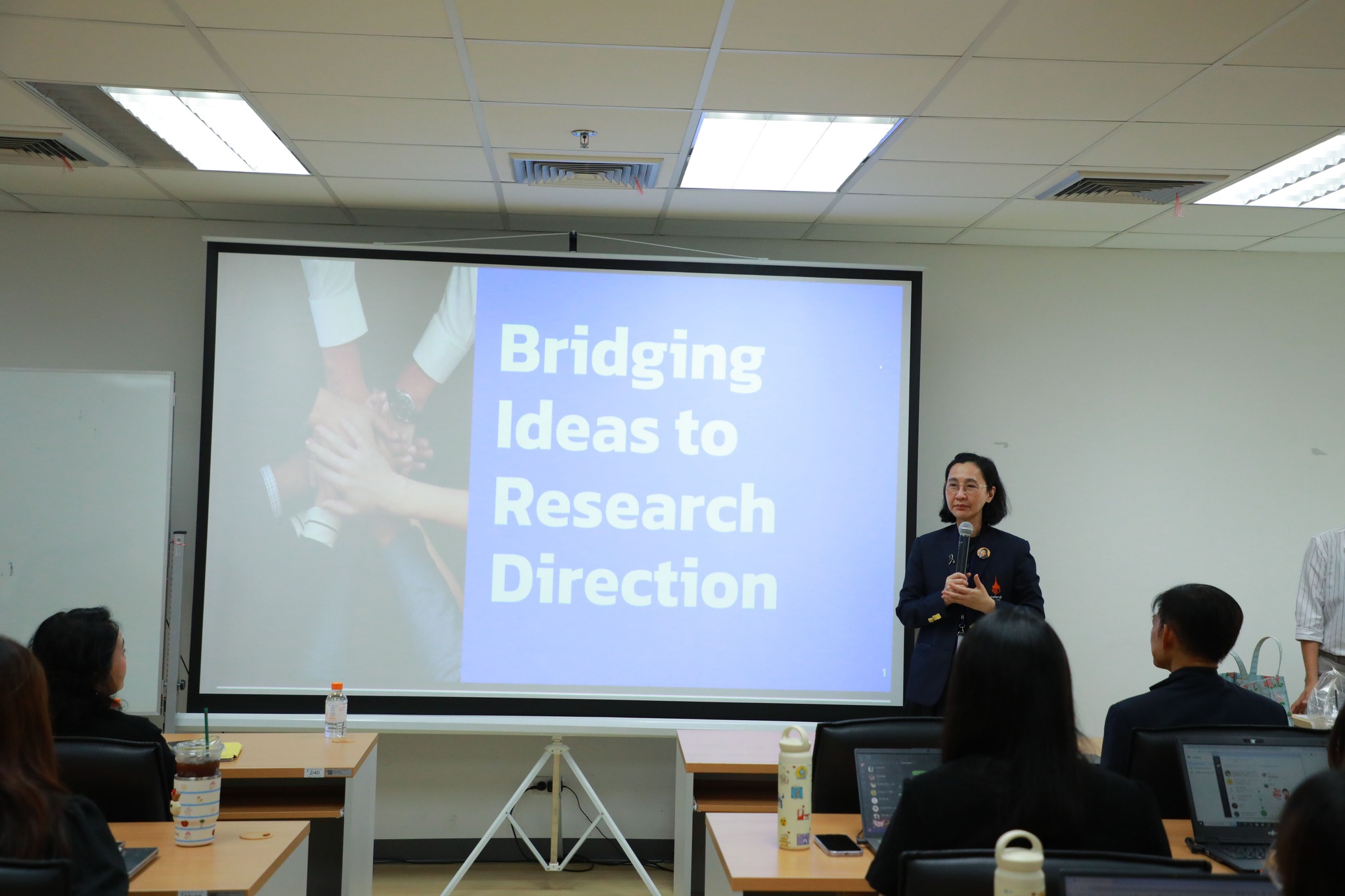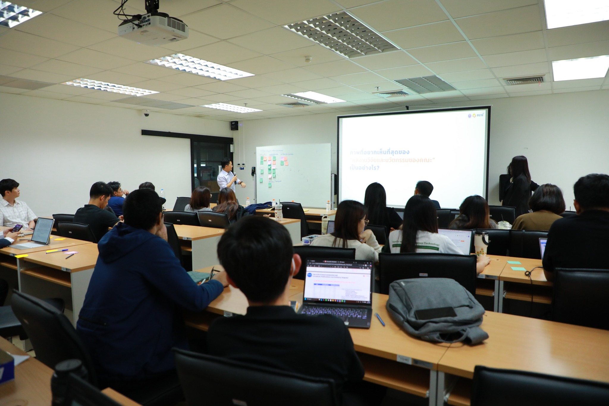 ในการนี้ ได้รับเกียรติจาก ศาสตราจารย์ แพทย์หญิงยุวเรศมคฐ์ สิทธิชาญบัญชา รักษาการคณบดีคณะเทคโนโลยีวิทยาศาสตร์สุขภาพ เป็นประธานในพิธีเปิดโครงการ และได้รับเกียรติจากคณะวิทยากรผู้ทรงคุณวุฒิจากสำนักงานสภานโยบายการอุดมศึกษา วิทยาศาสตร์ วิจัยและนวัตกรรมแห่งชาติ (สอวช.) มาร่วมถ่ายทอดองค์ความรู้และประสบการณ์อันเป็นประโยชน์ ขอขอบคุณวิทยากรทุกท่านรวมถึงผู้เข้าร่วมกิจกรรมที่ให้ความร่วมมืออย่างดียิ่ง ทำให้การจัดโครงการในครั้งนี้สำเร็จลุล่วงไปด้วยดี และหวังอย่างยิ่งว่าจะได้ร่วมสร้างความร่วมมือด้านการวิจัยและนวัตกรรมที่ยั่งยืนร่วมกันในโอกาสต่อไป